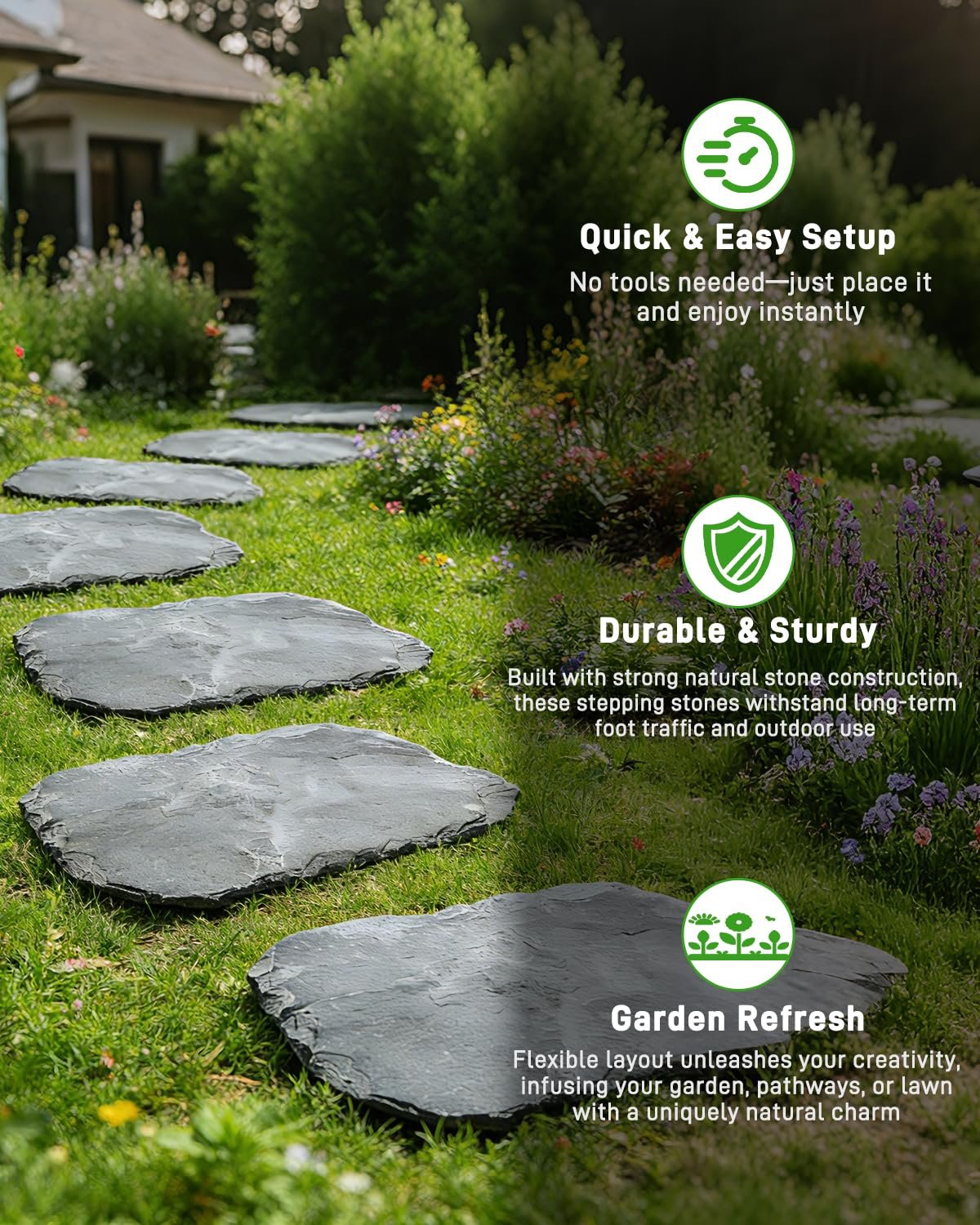 【Easy Installation & Versatile Use】Requiring no complex setup or special tools, these stones can be placed directly on walkways, lawns, or sandy areas. Effortlessly arrange and combine them to create garden paths, lawn stepping routes, or decorative accents for flower beds, tree surrounds, or natural patio features