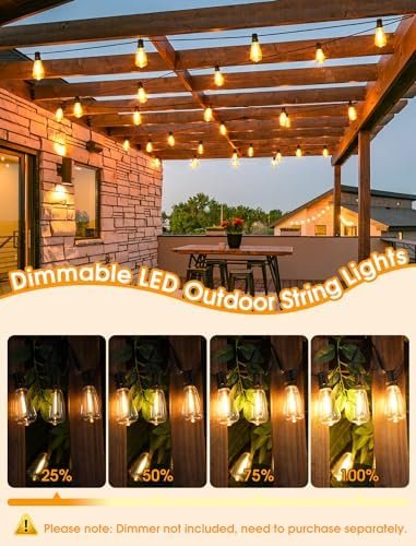 IP65 Waterproof Outdoor Patio Lights: Our led shatterproof bulbs are IP65 high-rated weatherproof to withstand heavy rain, humidity, heat and windy weather. Lightweight and storable, perfect for a variety of settings. Even on rainy days, you can enjoy our light strings without taking them back. Safer to use than glass bulbs without worrying about glass shards. Whether it’s a a birthday party, family gathering, or a romantic dinner to create a pleasant atmosphere, our lights have got you covered