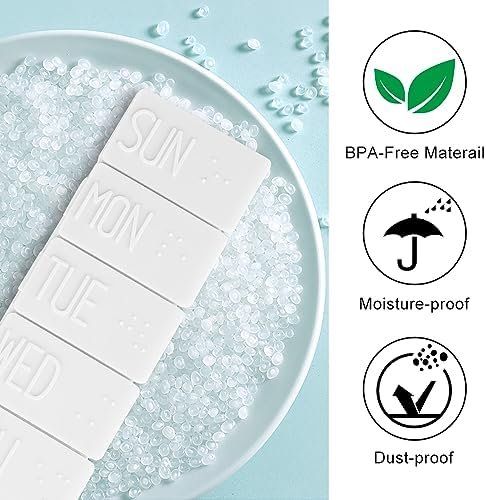 ⏰BULGE DESIGN: Our pill dispenser organizer is marked with a working day use bulge Font, great for those who have been impacted by vision loss , to help you plan your 7-day medication accurately. With this good helper, you don’t have to worry about your parents taking the wrong medicine.
