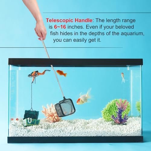 🐠Suitable For Different Sizes Of Fish Tanks – The handle of the DaToo Aquarium Fish Net is telescopic, you can adjust it as needed, the length range is 6~16 inches. This allows DaToo Aquarium Fish Net to be used in most fish tanks. Even if your beloved fish hides in the depths of the aquarium, you can easily get it.