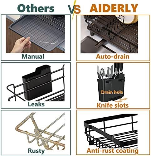 Everything drains into the bottom tray and then out through the spout into your sink. No leaking onto your counter. The spout is adjustable, so you can move it to adapt to your sink. This is an easy to assemble, organizes and create better drying area for kitchen. Save more space for your kitchen, AIDERLY dish drying racks are perfect for small counters.