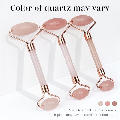 [Energized Skin] The at-home face massager is made of rose quartz. The face & eye roller is sturdy and no squeaky. The jade face roller is very smooth. It provides cooling and energizes the skin