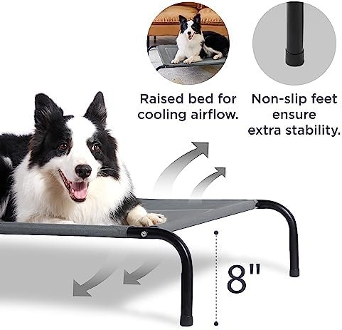 Indoor & Outdoor Use: Weather resistant, the 8″ raised breathable mesh cot works great indoors and outside. Keep your pup dry and comfortable in the backyard, on the patio or porch, next to the pool, or while camping.