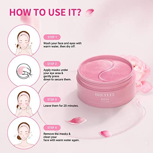 BREYLEE Rose Eye Mask– 60 Pcs – Eye Treatment Mask, Under Eye Bags Treatment, Under Eye Masks for Puffy Eyes, Anti-Aging,Anti-Wrinkle and Fine Lines, Under eye Dark Circles