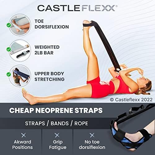 𝗟𝗜𝗚𝗛𝗧𝗪𝗘𝗜𝗚𝗛𝗧 𝗗𝗘𝗦𝗜𝗚𝗡: At 2x lighter than luxury variants, the CastleFlexx stretch equipment offers unmatched portability and ease of use. Perfect for athletes and fitness enthusiasts, this lightweight yoga stretching strap enhances your mobility without adding unnecessary bulk. Enjoy effortless stretches and exercises, whether at home or on the go, with our lightweight flexibility trainer.