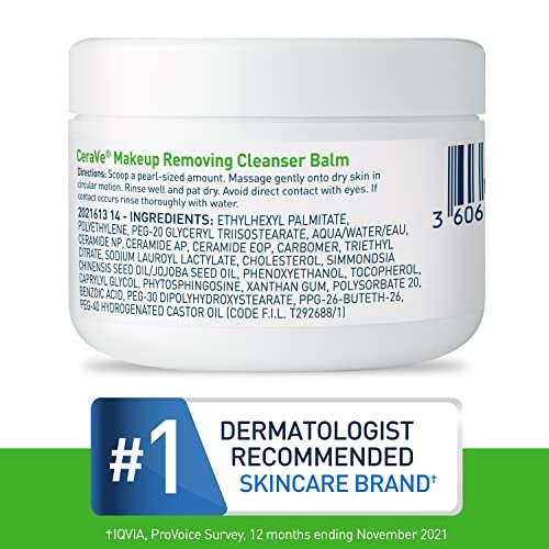Developed with dermatologists, the makeup melting balm is formulated with 3 essential ceramides and plant-based jojoba oil. CeraVe Cleansing Balm makeup remover effectively dissolves the most long-lasting makeup, gently removes dirt, oil and impurities, moisturizes the skin and leaves skin feeling comforted with non-greasy feel. This makeup cleansing balm is easy to rinse off and does not leave residue on the skin. Skin appears smooth, clean, and radiant after using this balm cleanser. This makeup remover is suitable for all skin types including sensitive skin.