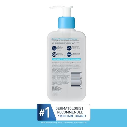 Developed with dermatologists, CeraVe Renewing SA Cleanser exfoliates and detoxifies to remove dirt & oil while softening and smoothing skin without feeling dry. Unlike some exfoliating cleansers, CeraVe Renewing SA Cleanser contains no harsh beads, grains, or microbeads and is gentle on skin. This salicylic acid foaming gel cleanser is suitable for use on face and body as well as acne-prone skin.