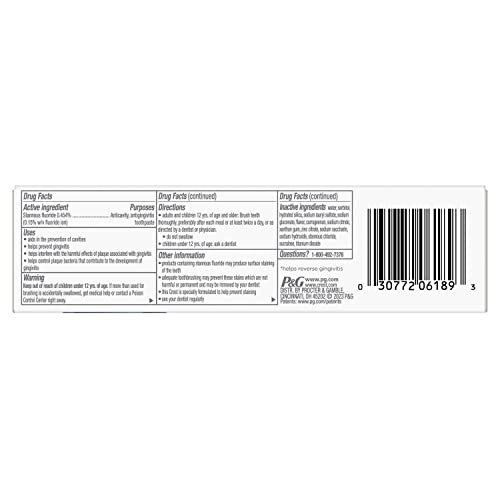 Created after years of research by Crest scientists, Crest Gum and Enamel Repair Intensive Clean Toothpaste has been specially formulated for healthier gums and helps repair weakened enamel. With clinically proven enamel protection ingredients, it targets the gumline to neutralize plaque and prevent gingivitis, while repairing weakened enamel. Unleash the power of stannous fluoride to help remineralize weakened enamel and eliminate plaque near the gum line. This foamy toothpaste helps reverse early gum damage in 2 weeks* and is able to reach more places in your mouth, like around the gum line, leaving your teeth clean and strong and your gums feeling refreshed. From Crest, the #1 gum toothpaste brand in America.*Helps reverse gingivitis.