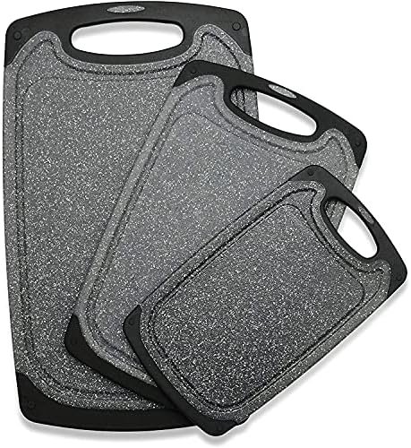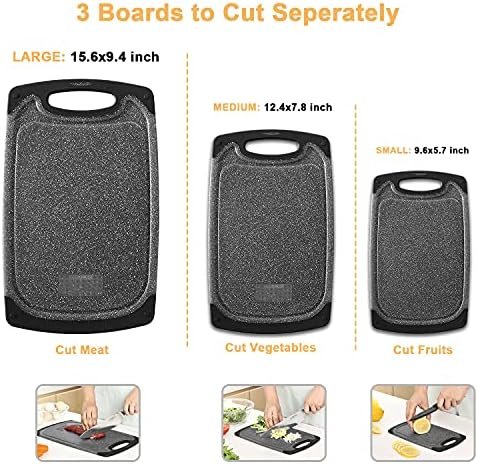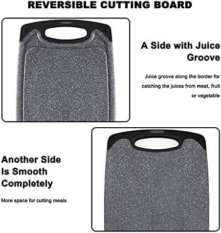 Knife-Friendly Cutting Board Set Dishwasher Safe: They are made from thick, heavy-duty plastic, and marble pattern design reduces scratches on cutting board set, durable than ordinary cutting boards. and non-porous design makes cutting board dishwasher safe. Both surfaces are knives friendly and tough enough to withstand chopping, cutting and dicing.