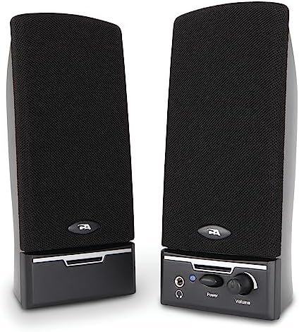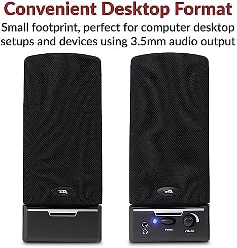 Attractive design – Featuring discrete cloth grill covers and magnetically shielded satellite speakers, this stereo speaker system looks great with any setup. Easily access power, volume, and headphone jack from the front of the right speaker. An LED power indicator makes it easy to see if the speakers are on.