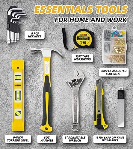 DOWELL 146PCS Homeowner Tool Set, Household Repairing Tool Kit with 14-Inch Wide Mouth Open Storage Tool Bag