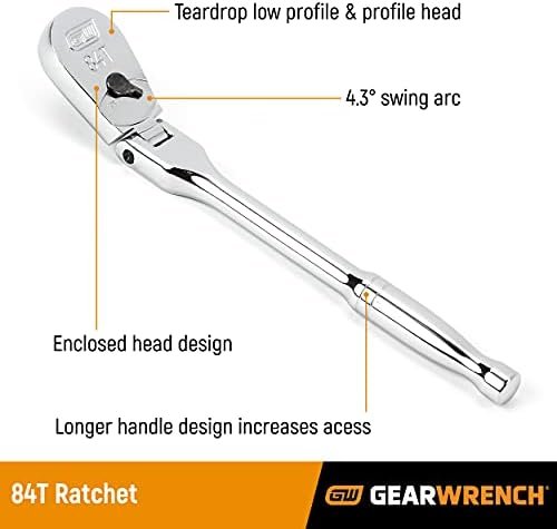 The GEARWRENCH 84 tooth ratchets provide a 4.3 degree ratcheting arc, enabling users to turn a fastener in tighter confines. The ratchet heads are low profile and feature an enclosed head design for extreme resistance to dirt infiltration. They are made from premium alloy steel and feature a full polish chrome finish that resists rust and corrosion. They are a must have for every tool box.