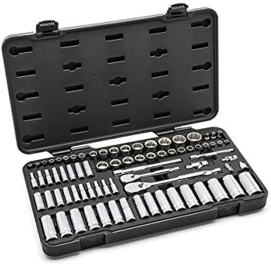 GEARWRENCH 76 Pc. 1/4″ & 3/8″ Drive 12 Pt. Standard & Deep Mechanics Tool Set, SAE/Metric – 80948