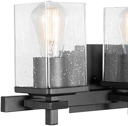 With strong lines paired with vintage accents and a stark matte black finish, the Dakota 5-piece All-In-One Bathroom Set adds an upscale industrial element to any space. The seeded glass and rectangular shades of the vanity light fixture offer a vintage feel while industrial accents complete the look. Update and modernize your bathroom or add the 3-light vanity to your bedroom to create a stunning getting ready nook. Complete with a towel bar, towel ring, robe hook, and toilet paper holder also in matte black, your bathroom will look streamline and welcoming. While the pieces complement each other you can split this set up and use it throughout your home. The towel bar makes an excellent shoe holder. The towel ring would be great in your kitchen. The vanity light would work in your bedroom, bathroom or kitchen. With the ability to use this light as an up-light or a downlight, the options are endless. Unleash your interior designer and think creatively. Think outside the box!