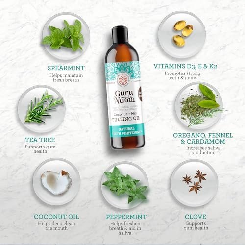 Swishing GuruNanda Mickey D’s Pulling Oil helps deep clean your mouth, aids in saliva production, promotes plaque removal, and supports healthy teeth and gums, for a brighter smile and fresher breath.