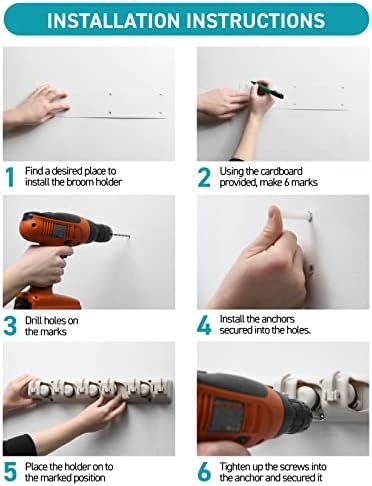 Durable Tool Hangers For Garage Wall – Our broom organizer wall mount and mop storage rack can hold up to 11 tools and every slot can support up to 7.5lbs. Our garage storage racks have a total load-bearing capacity of 38lbs.