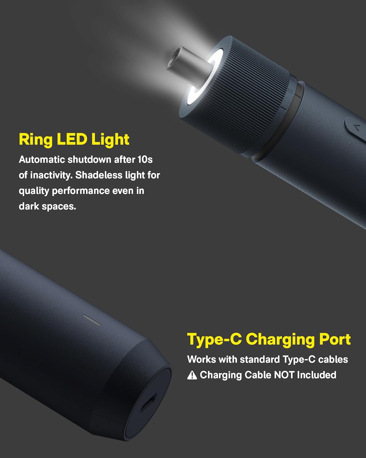 Shadowless Circular LED Light: Features an automatic circular LED light that eliminates shadows and provides clear visibility in dark or narrow spaces. Designed with a focus on quality, style, and ease of use for confident performance
