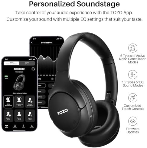 [All-day Comfort & Adjustable Design] TOZO HT2 uses ultra-soft protein leather earcups, which allows you to wear it for a long time without feeling uncomfortable. The earmuffs can also automatically adjust the angle to suit users with different head shapes. Making them the ideal headphones to work from home or watch your favorite movie.