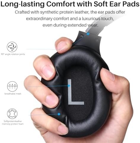 [Up to 60 Hours of Playtime] With up to 60 hours of listening time of our over ear headphones in ANC OFF mode, triple as much as other Bluetooth headphones. A single charge gives you enough juice to listen to over 700 songs or soundtrack multiple long haul flights. Also equipped with a 3.5mm audio cable, you can effortlessly transition to a wired mode when the battery has run out, guaranteeing uninterrupted listening.