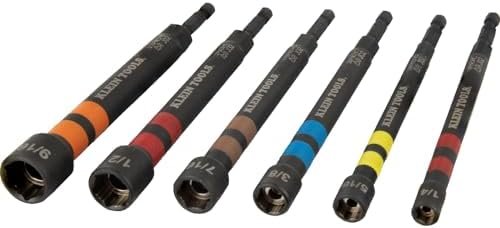 Klein Tools 32950 Ratcheting Impact Rated Hollow Power Nut Driver Set with Handle, Magnetic, Color Coded, 6 SAE Hex Sizes