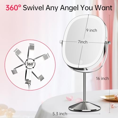 【360-Degree Rotation】: This cordless makeup light mirror with 360-degree rotation design allows you to easily find the angle you want and switch between 1x and 7x mirrors, providing you with a perfect reflection. The non-slip and stable base is detachable and easy to carry when traveling.