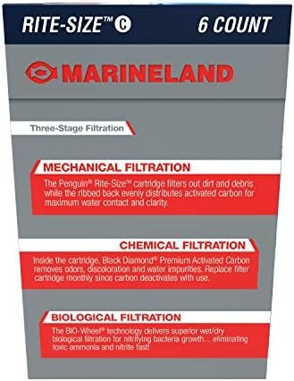 Marineland products are designed with both performance and style in mind. We push precision and power beyond the expected and listened to our loyal customers to make our products even better. We do this because at the heart of our innovative spirit is a desire to help hobbyists everywhere do more, create more and, most of all, enjoy more. So whatever you’re passionate about – freshwater or saltwater, big or small, beauty or science – make your aquarium your own. Marineland Penguin Power Filter Cartridges are designed to meet the standards of water purification, performance and operational ease. Each replacement cartridge is pre-assembled and slides easily into place, providing mechanical and chemical filtration and making replacement fast, dry and effortless. The cartridge mechanically filters water through a pad of double-thick poly fiber. Debris and waste particles are trapped, and water is chemically filtered through Black Diamond Premium Activated Carbon. Inside the cartridge, a ribbed backing ensures even distribution of activated carbon to deliver maximum water-to-carbon contact. The result is sparkling clean water. The Marineland Penguin Power Filter Cartridges feature convenient, color-coded Rite-Size packaging to make it simple to choose the right replacement cartridge. These filter cartridges fit Penguin PRO Power Filters 275 and 375, as well as original Penguin Power Filters 200 and 350. For best results, replace monthly.