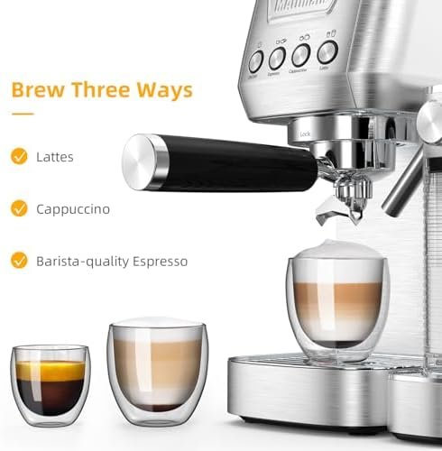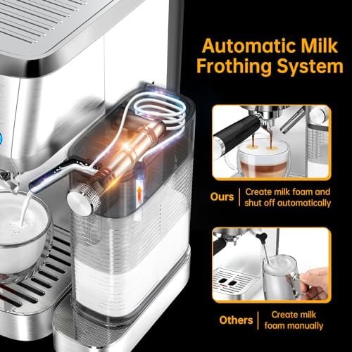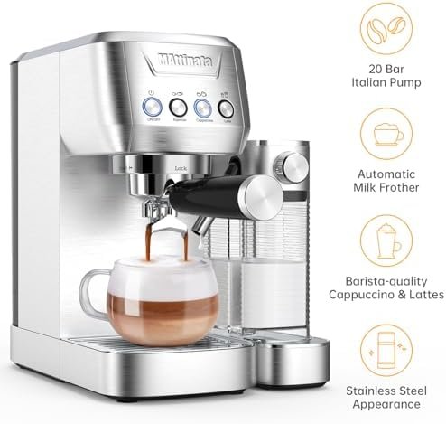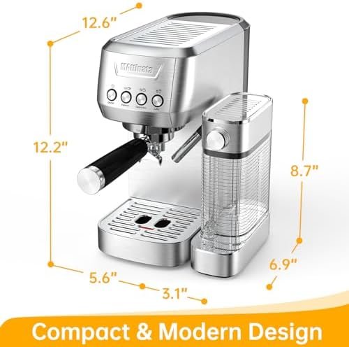 【Choose The Coffee You Want】The MAttinata espresso machine with milk frother allows you to enjoy barista-quality Espresso, Capuccino, Latte at home. The compact cappuccino maker machine features a stylish stainless steel design and is ideal for any size kitchen.