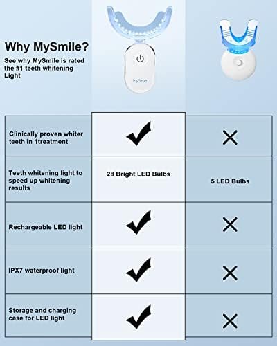 MySmile Teeth Whitening Kit with led Light, 28X Teeth Whitening Strips for Teeth Sensitive, 10 Min Fast Whitening , Helps to Remove Stains from Coffee, Smoking, Wines(1Pcs Light + 14Sets Strips)