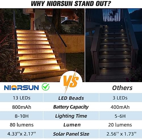 Effect Comparison: NIORSUN Solar Step Lights VS Other Traditional Step Lights.