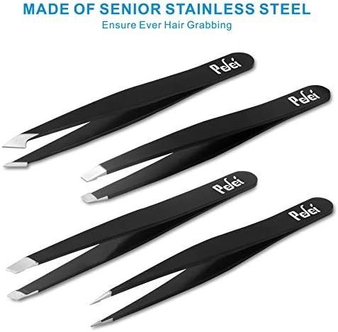 1.Pointed tweezers: Extremely sharp tweezers that are excellent for really fine small or ingrown hairs. 2.Slant tweezers: Great for hair removal on larger areas on your face or around your bikini line. 3.Pointed slant tweezers: This is the most versatile tweezers that can be used for precision work such as eyebrows and ingrown hairs. 4.Classic tweezers: Precision-aligned slant tip for larger application purpose.