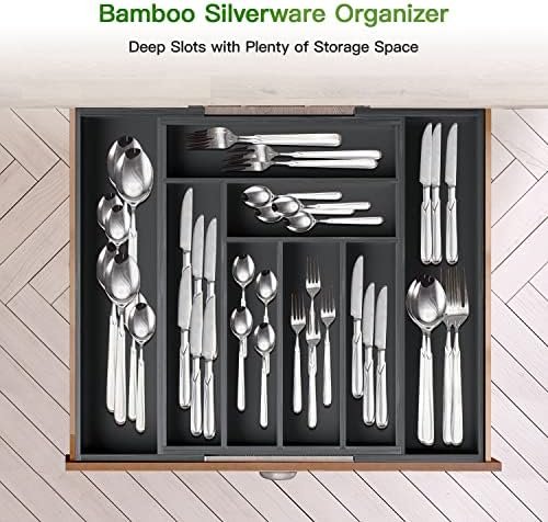 Expandable and Adjustable Utensil Organizer: Designed with 6-8 compartments, the silverware organizer can save space while accommodating multiple items, which is expandable from 12.91 inches to 19.69 inches wide with smooth sliding.