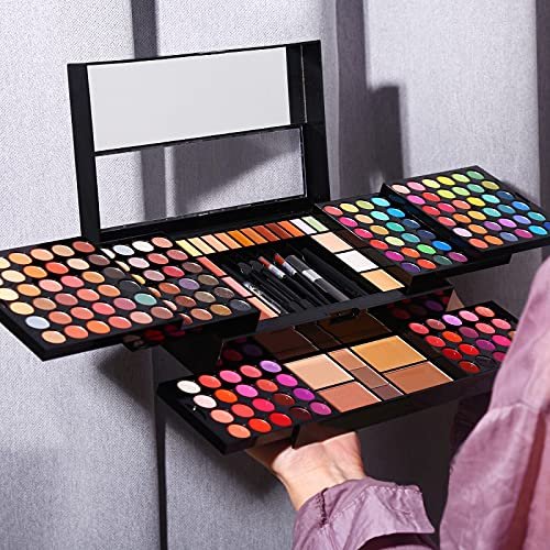 EASILY PORTABLE COMPACT KIT – Measures at 8.6 x 5.1 x 2.3 inches when closed. Sleek design and sliding compartments make it a super-stocked ON-THE-GO cosmetics makeup kit. Perfect for travel and maximize space.