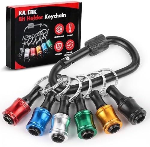 【Portable and Compact】Thanks to its compact size, this 1/4 bit holder is easy to carry around. The keychain bit holder allows for easy attachment to various locations, making this a convenient addition to your construction accessories men and electrician tools.The Katerk bit holder is cast from high-quality alloy material, promising a long product lifespan. Despite its rugged strength, the Bit keychain remains lightweight, maintaining the convenience of portability.