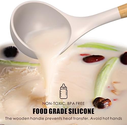 Heat Resistant (-40°F/446°F).Easy to clean Food grade silicone & BPA-Free Material Natural wooden handle prevents heat transfer and protects hands Notice1:Before or after use, please wash kitchen utensil with warm water in time and keep it dry. Notice2:Gently rinsing in warm water is the best way to clean these NON-STICK cookwares instead of using abrasive cleaners or soaking in the water for a long time.