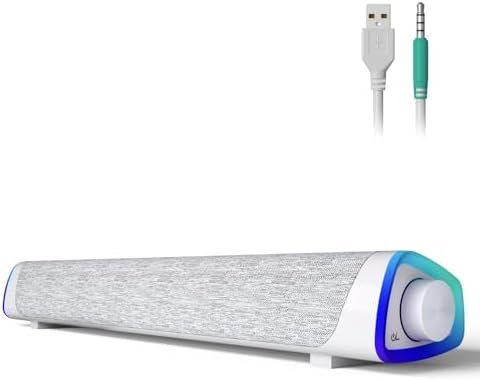 [Wide Compatibility]: The sound bar supports most of the devices with standard 3.5mm jack. Compatible with PC, Computer, Laptop, Tablet, Smartphones. (Note: Need USB Powered)