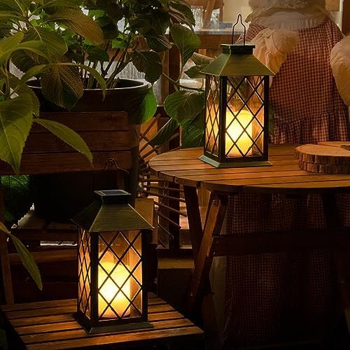 TAKE ME 14″ Solar Lanterns Outdoor Waterproof Garden Lanterns Large Flickering Flameless Candle Mission Lights for Table,Outdoor,Party Valentines Day Gifts ( 2 Packs)