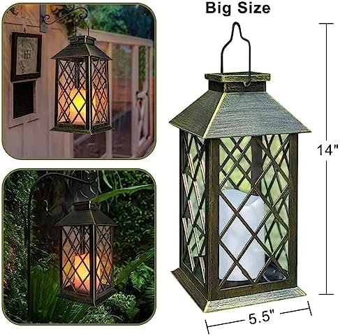 Large dimension: (H)14inch* (L )5.5inch* (W) 5.5inch. IP65 Waterproof and Designed for Outdoor Use. These lanterns are well made, more exquisite & atmospheric, a good hand feel.