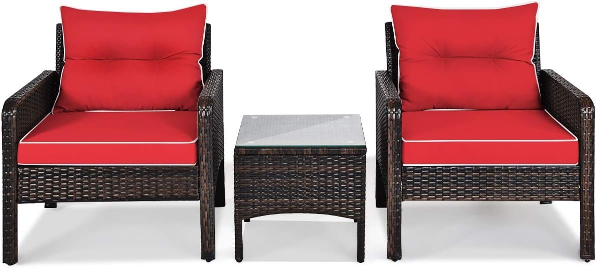 Wide Range of Applications: Made of all-weather PE rattan, this 3-piece wicker furniture set is suitable for both indoor and outdoor use. With Simple and generous appearance, it is ideal for patio, front porch, poolside, backyard and many other spaces.
