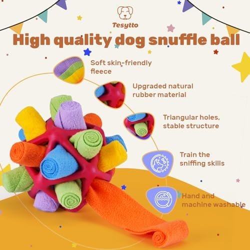 🐶 [Upgraded soft durable materials]: This sniff ball is made of durable and comfortable polar fleece and Eco-friendly rubber material, which is soft, non-toxic, durable and odorless to make sure will not let your pet uncomfortable. Upgraded rubber material, more resistant to biting.