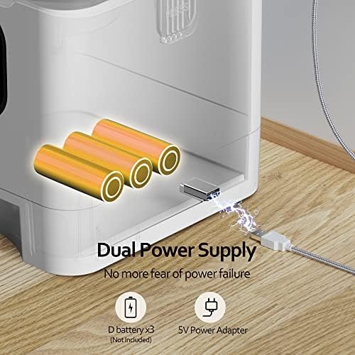 Wired or Battery Power: Choose between a fixed wired connection with the 5V adapter USB power cable or a portable 3 D-cell battery-powered feeding station. Flexible options prevent your pet from going hungry during power outages.