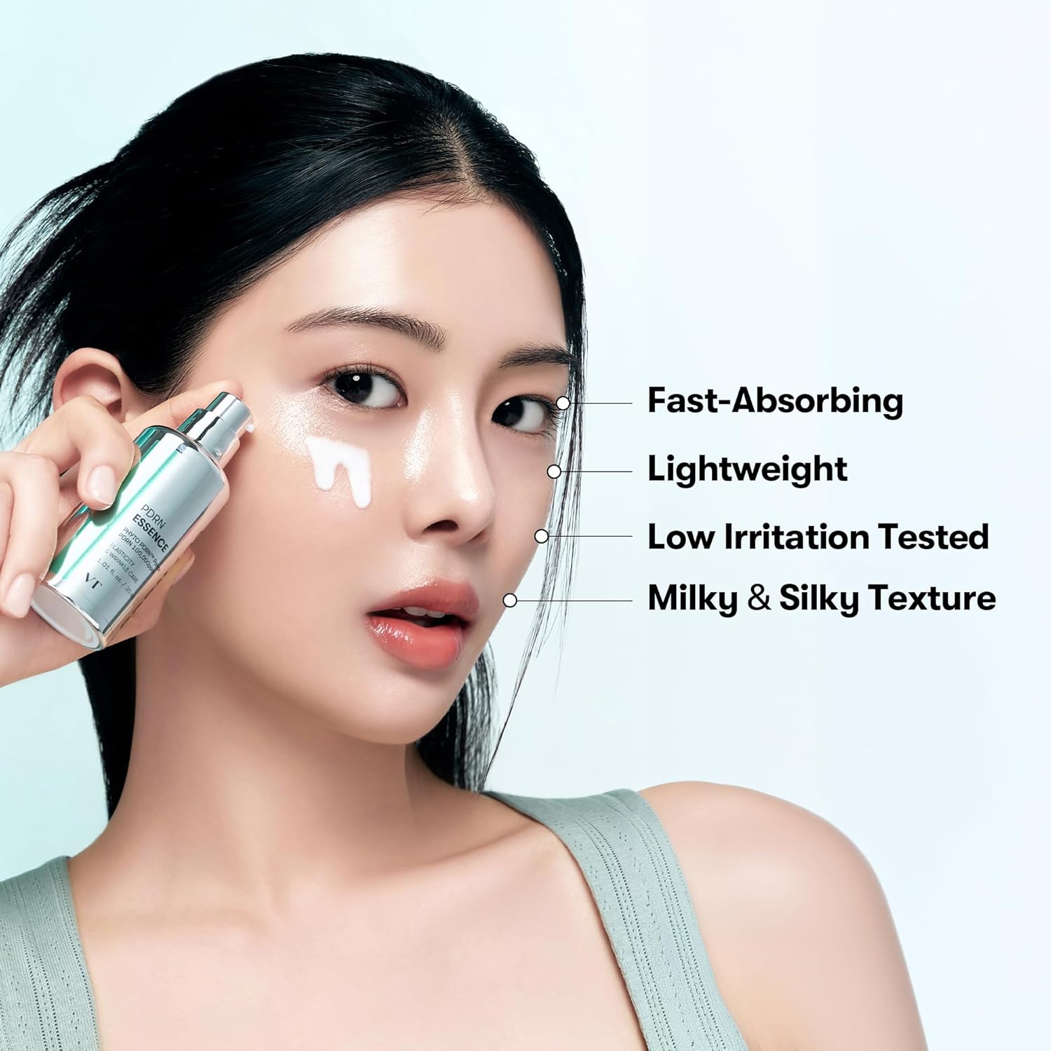 [LUMINOUS HYDRATION] Our essence, with its smooth milky texture, not only forms a glowing moisturizing layer on your skin but also helps improve skin elasticity, imparting a spa-like water glow effect and hydrating your skin with every application.