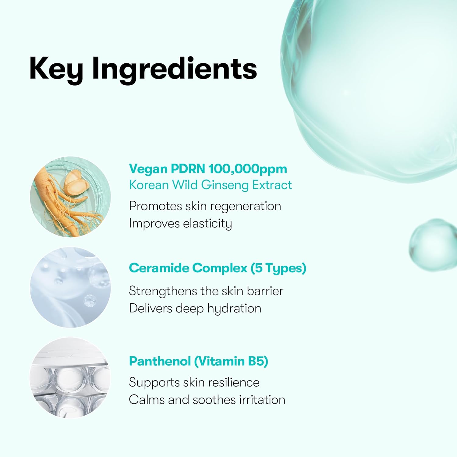 [VEGAN 100,000 PPM PDRN] Our PDRN essence is uniquely sourced from Korean wild ginseng, offering a superior plant-based alternative to commonly used fish-derived PDRN. With its low molecular weight and enhanced stability, it ensures excellent absorption for maximum efficacy.