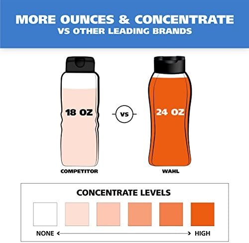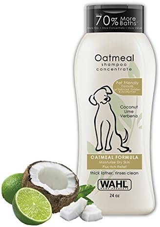 Our shampoos are concentrated, which means a little bit goes a long way! Be sure to thoroughly rinse your dog after shampooing to leave no residual shampoo behind. In addition, it’s important to always comb out and dry your pets coat; leaving your dog with damp fur for hours can lead to protentional risk for dogs with sensitive skin. Wahl’s Oatmeal formula shampoo contains coconut lime verbena. This allows us to help gently cleanse, moisturize, & protect your puppy’s delicate skin by providing itch relief. The rich lather helps clean dirty coats and other environmental residue. Since our shampoo is easy to clean, it leaves your dog’s coat looking clean, silky, and smooth. Our plant derived ingredients make our shampoo the choice for owners who want to avoid harsh chemicals for their dog and themselves. Our shampoo is PEG-80 free, alcohol free, paraben free, and pH balanced. Our 24 oz size and concentrated formula allows for up to 70% more baths than other leading brands. While there are no harmful chemicals in our pet products, some pets are sensitive to certain plant oils used in our products. Wahl strongly recommend talking to your vet and doing a small spot test on your pet at least 24 hours before using any new product. Wahl has been serving professional vets and groomers for over 50 years. clean, condition fur & hair for a smooth, soft coat. We are a company of animal lovers that want the best for your family member.