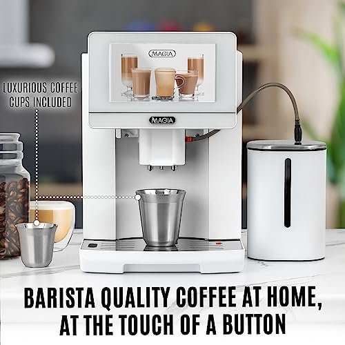 Zulay Kitchen Magia Super Automatic Espresso Machine with Grinder – Espresso Maker with Milk Frother & Insulated Milk Container- Cappuccino & Latte Machine – Touch Screen, 19 Recipes, 10 Profiles